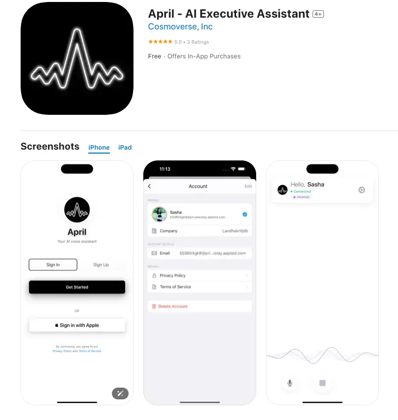 1.April – 声控 AI 执行助手 April 是一款语音 AI 行政助理,可免提管理您的电子邮件和日历。专为需要行政助理的忙碌人士打造。只需语音,您就可以让 April 重新安排会议、删除垃圾邮件并回复重要邮件。 https://apps.apple.com/us/app/april-ai-executive-assistant/id6747432952