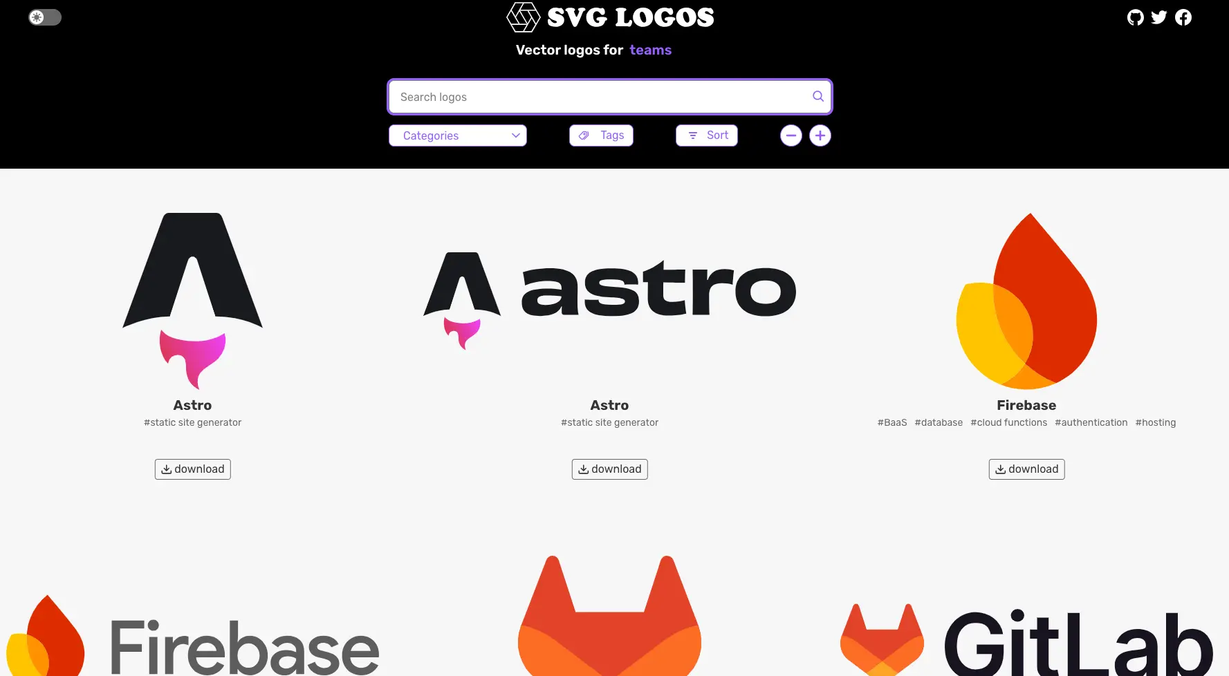 链接: https://svglogos.dev/ 源码: https://github.com/gilbarbara/logos