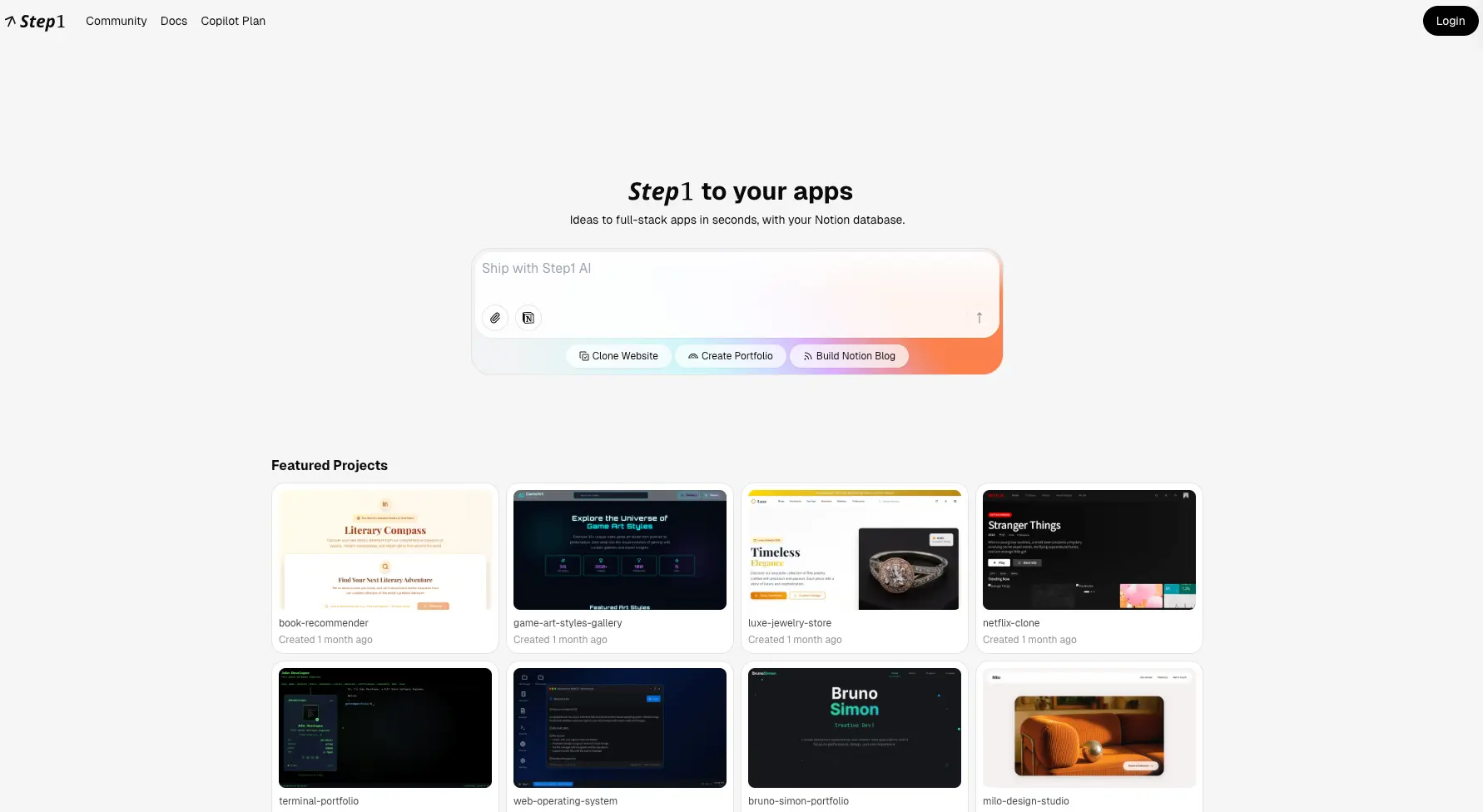 4.Step1-在线 AI 生成网页的工具,支持 Notion 数据 https://step1.dev/
