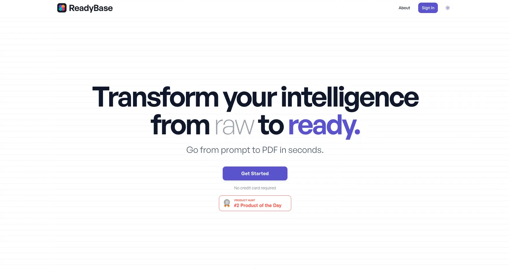 4.ReadyBase ReadyBase 允许用户将任何输入转换为可立即投入生产的 PDF 。创建可随时共享、发送、发布或演示的输出。旨在生成引人入胜、易于使用的输出,提升任何情报工作流程的水平。 https://readybase.ai/
