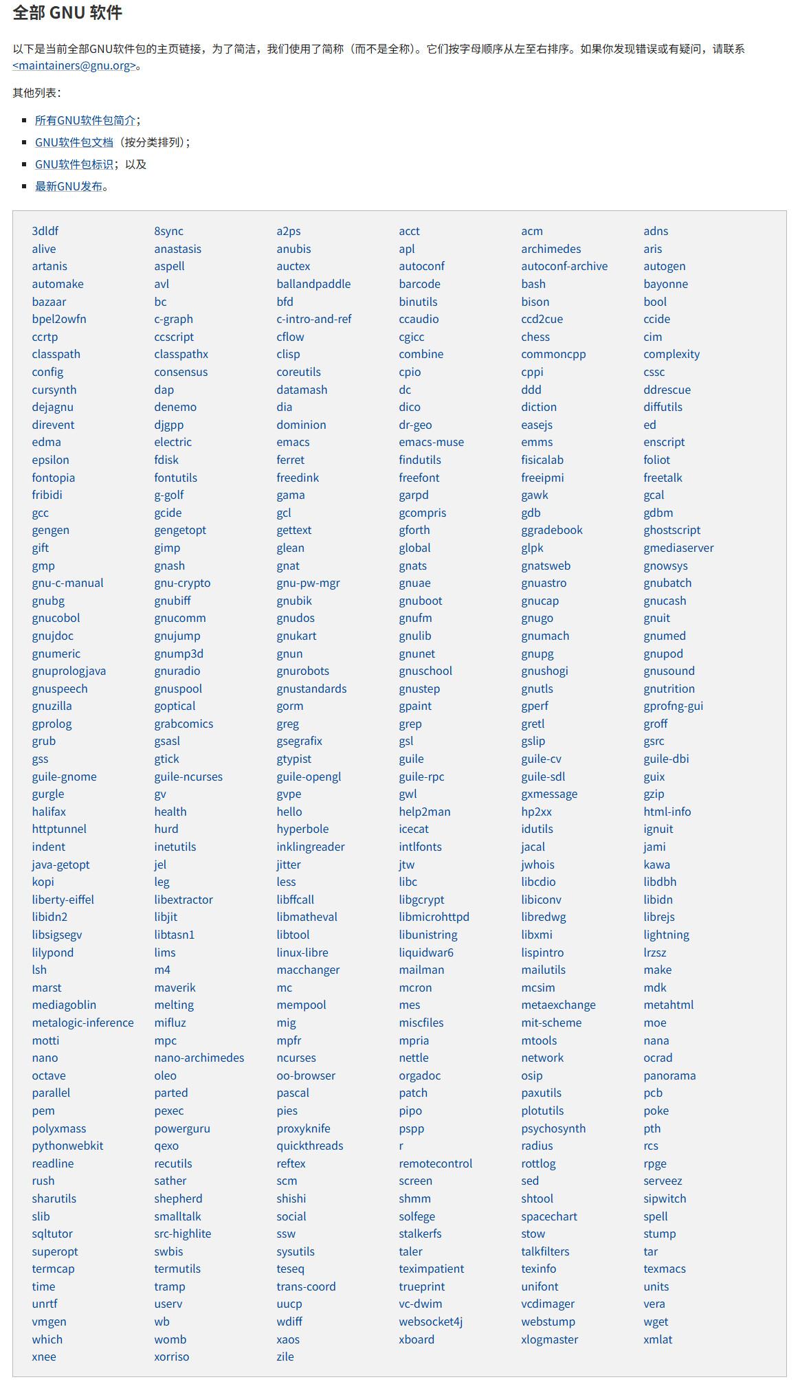 查了下,,GNU 项目主要是 GCC 、GDB 、Glibc 、Coreutils 、Bash 等