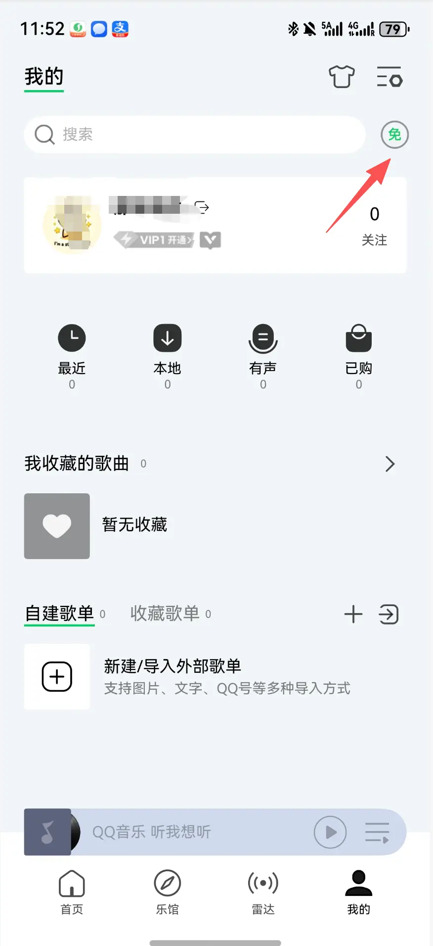 另外纯血的原生 QQ 音乐,把我乐了,我一加系统的右上角是一个“免”,就是看广告免费时长嘛。 他的是换成一个“¥”,就是开会员的。